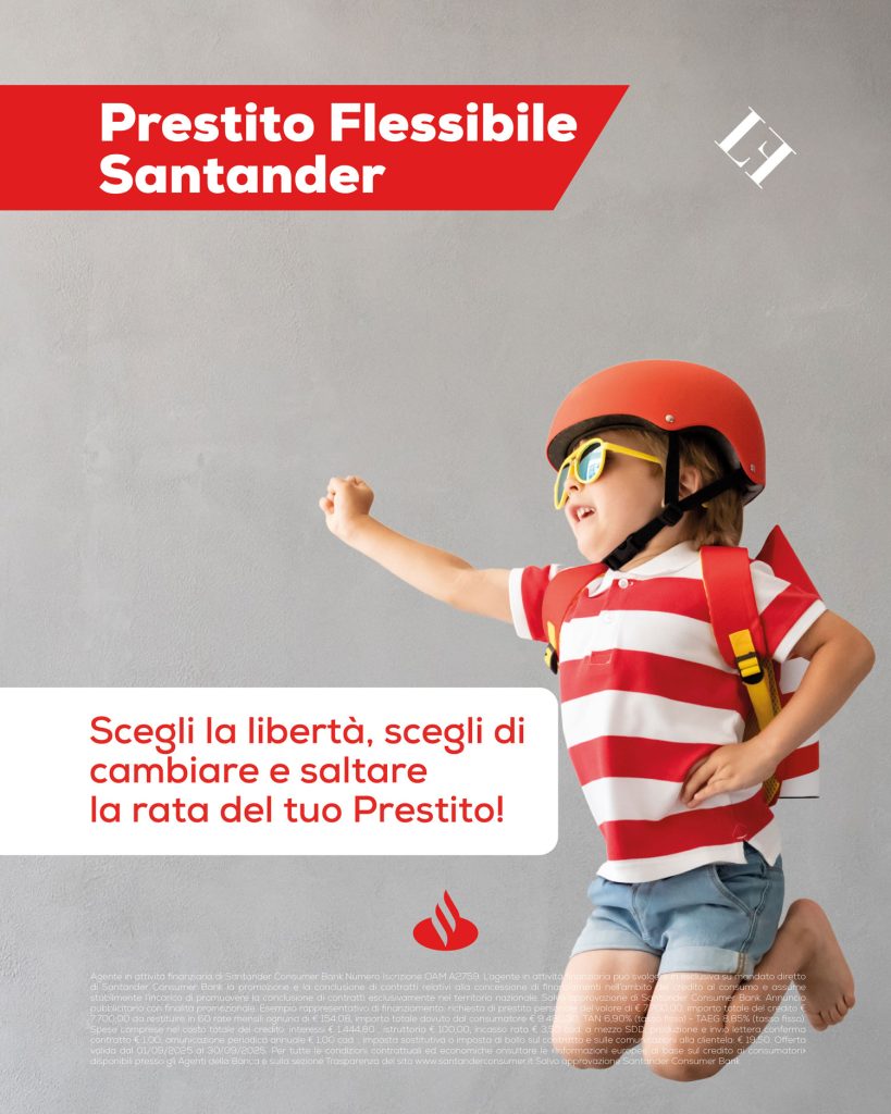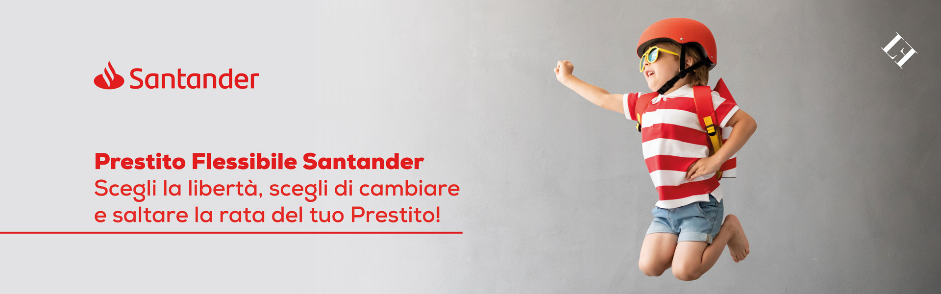Annuncio pubblicitario con finalità promozionale. Per tutte le condizioni contrattuali ed economiche consultare le “Informazioni europee di base sul credito ai consumatori” presso gli Agenti della Banca o sulla sezione Trasparenza del sito www.santanderconsumer.it Salvo approvazione di Santander Consumer Bank.